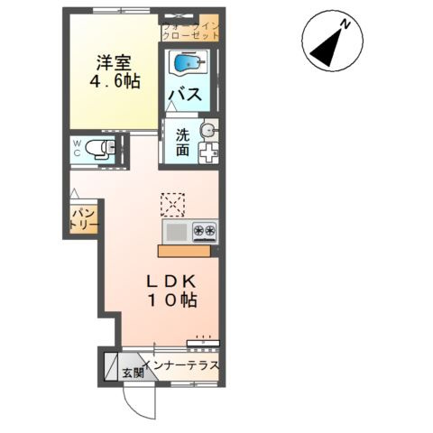 洋室 4.6帖 1室/LDK 10.0帖 1室 - 向き